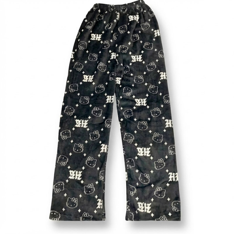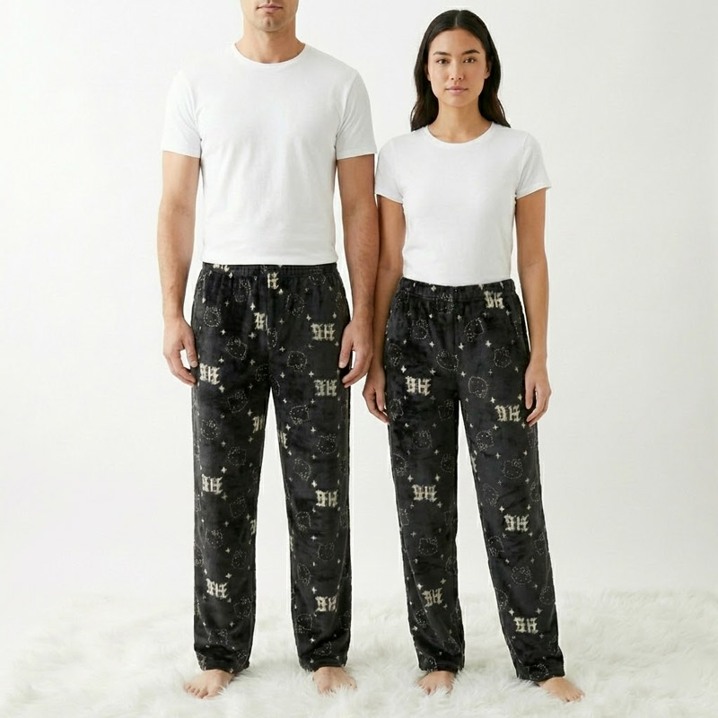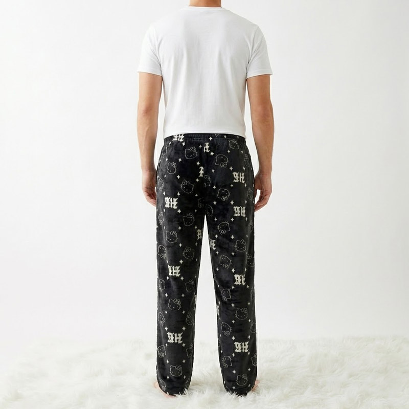 Who said Hello Kitty is just for cute aesthetics? These Hello Kitty Pajama Pants Men bring a fresh, streetwear edge to the classic character. Featuring a black background with “HK” monograms in a cool gothic font and outline-style Hello Kitty faces, these pants are the perfect blend of comfort and street style. Ideal for guys, or anyone who loves an edgier look.